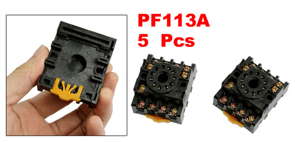 Product Name Relay Socket Model PF113A Terminals Number 11 Total Size (Approx.) 5 x 4.3 x 2.6cm / 1.9" x 1.6" x 1" (L * W *T) Main Color Black Weight 243g Package Content 5 x Relay Socket - Reviews