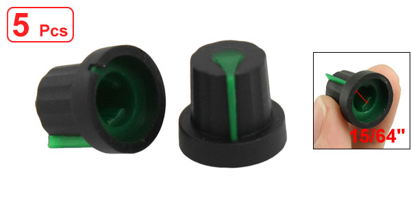 Product Name Potentiometer Control Knob Knob Top Diameter 11mm / 0.43" Knob Base Diameter 16mm / 0.63" Shaft Insert Diameter 6mm / 15/64" Knob Total Height 14.5mm / 0.57" Material Plasticm Rubber Main Color Black, Green Weight 6g Package Included 5 x Potentiometer Control Knob - Reviews