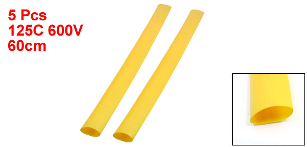 9.5 mm / 0.4"(After Shrinking)Shrink Ratio 4:1 Length (Approx.) 60 cm / 23.6" Color Yellow Net Weight 274g Package Content 5 Pcs x Heat Shrinkable Tubing - Reviews