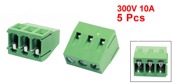 5 Pcs 128-3P 3Pin 5mm Pitch Screw Terminal Block 300V 10A