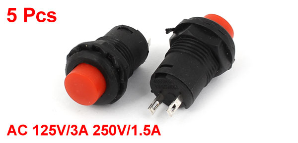 5 Pcs 12mm NO ON-OFF Momentary Round Red Push Button Switch AC 125V/3A 250V/1.5A