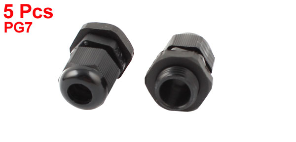 5 Pcs 12mm OD PG7 3-6.5mm Cord Connectors Waterproof Fixing Cable Glands Black