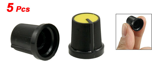 5 Pcs 12mm Top Dia Black Yellow Plastic Knobs for Potentiometer Pot
