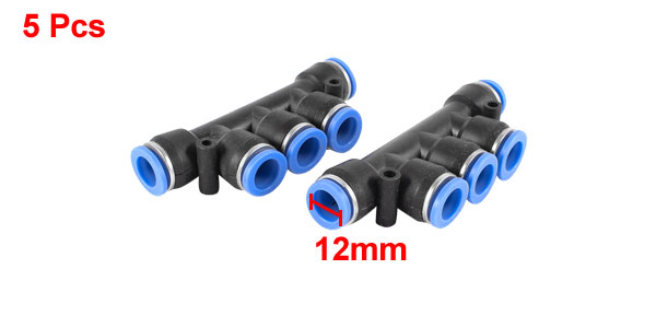 5 Pcs 12mm Tubing 5 Ports Push in Joint Air Pneumatic Connector Quick Fitting
