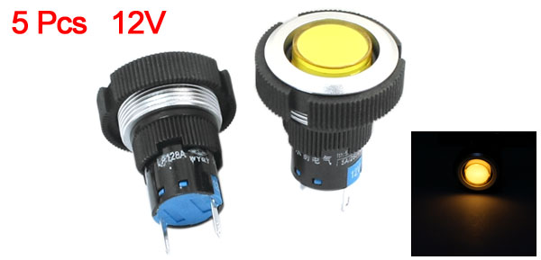 5 Pcs 12V 2-Pin Soldering Yellow Signal Indicator Light Lamp 22mm