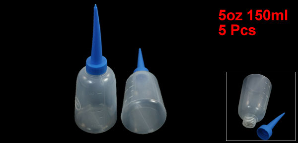 5 Pcs 150cc Blue Nozzle Clear Plastic Industry Liquid Squeeze Measuring Bottles