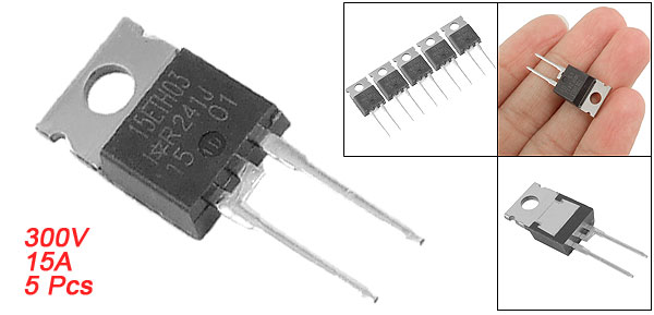 Product Name Hyperfast Rectifier Model No. 15ETH03 VRRM 300V IF(AV) 15A Mounting Hole Diameter 3.5mm / 0.137" Pin Size 14 x 4mm / 0.551" x 0.157" ( L* Pitch) Total Size 29 x 10 x 4mm / 1.14" x 0.39" x 0.15" (L*W*H) Weight 10g Package Content 5 x Hyperfast Rectifier - Reviews