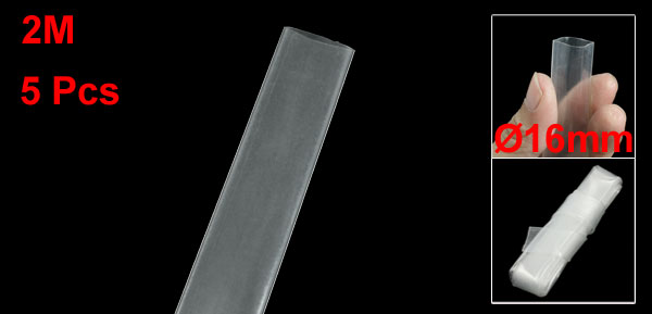 5 Pcs 16mm Diameter Clear Polyolefin Heat Shrinking Tube 2M 6.6Ft