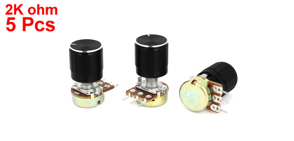 Details5 Pcs 17 x 17mm 2K OHM B Type Taper Rotary Potentiometer 2KB B2K Pot  Product Name Potentiometer Resistance Value 2K ohm Adjustment Type Top Adjustment Type Single Linear (Type B) Features Knurled Shaft Shaft Diameter 6mm / 0.2" Shaft Length 13mm / 0.51" Mounting Thread Diameter 7mm / 0.3" Base Size 16 x 7.3mm / 0.63" x 0.29"(D*H) Knob Size 17 x 17mm / 0.67" x 0.67"(D*H) Total Height 31mm / 1.2" Material Metal, Electronic Parts Net Weight 50g Package 5 x Potentiometer