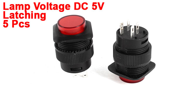 5 Pcs 1.8V SPST 4 Pin Terminals Latching Red Indicator Light Push Button Switch