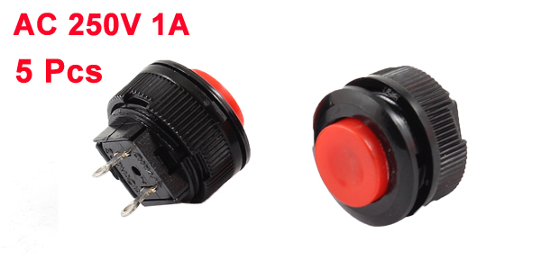 5 Pcs 1A/250VAC DS-500 Momentary SPST Red Round Shape Pushbutton Switch