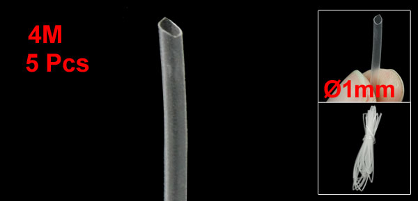 5 Pcs 1mm Diameter Clear Polyolefin Heat Shrinking Tube 4M 13.1Ft