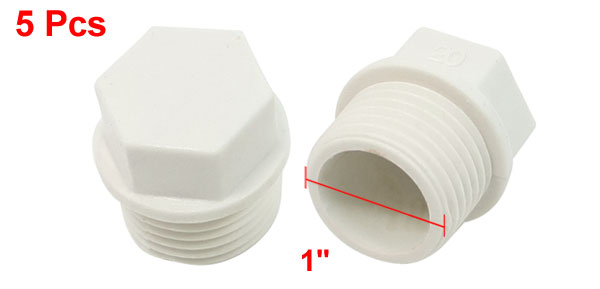 Product Name Hex Head Pipe Plug Color White Material PVC Plastic Hex Size 24mm / 0.94 Thread Diameter 25.5mm / 1" High 26.5mm / 1.04" Net Weight 37g Package Content 5 x Hex Head Pipe Plug - Reviews