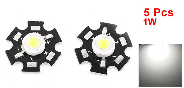 Product Name LED Bead Emitters Intensity Luminous 90LM Color Temperature 6000-6500K Power consumption 1W Voltage DC 3.0-3.6V Material Electronic Parts, Aluminum LED Head Diameter 5mm Total Size 20 x 6mm/0.8" x 0.23"(D*T) Emitter Color Pure White Net Weight 9g Package Content 5 x LED Emitter Bead - Reviews
