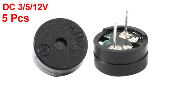 5 Pcs 2 Pin Cylinder Electronic Continuous Sound Passive Buzzer 12x6.5mm