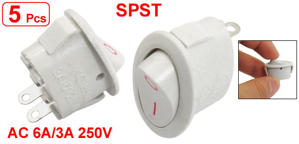 5 Pcs 2 Pin SPST On/Off Oval Rocker Switch AC 3A/6A 250V White
