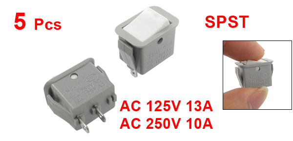 5 Pcs 2 Pin SPST On/Off Rocker Switch AC 10A/250V 13A/125V Gray