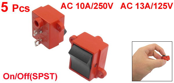 Item Name Rocker Switch Type On/Off(SPST) Voltage & Current AC 10A/250V, AC 13A/125V Total Size 26 x 21 x 22mm / 1" x 0.83" x 0.87"(L*W*H) Mount Hole Size 21 x 17mm / 0.87" x 0.67"(L*W) Hole Diameter(for screw) 2.5mm / 0.1" Color Red, Black Material Plastic & Metal Total Weight 22g Package Content 5 x Rocker Switch - Reviews