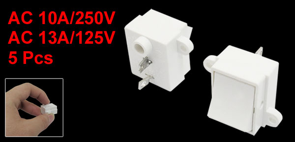 Item Name Rocker Switch Type On/Off(SPST) Voltage & Current AC 10A/250V, AC 13A/125V Total Size 26 x 21 x 22mm / 1" x 0.83" x 0.87"(L*W*H) Mount Hole Size 21 x 17mm / 0.87" x 0.67"(L*W) Hole Diameter(for screw) 2.5mm / 0.1" Color White Material Plastic & Metal Total Weight 23g Package Content 5 x Rocker Switch - Reviews