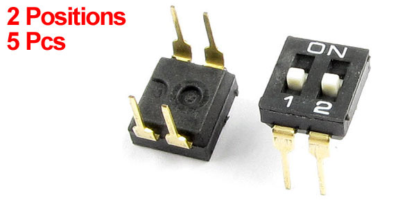 5 Pcs 2 Position Dual Row 2.54mm Pitch IC Type DIP Switch