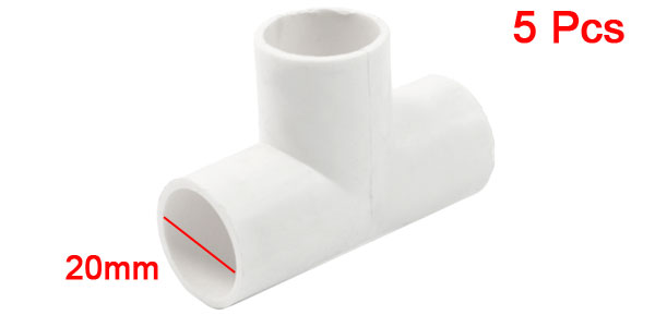 Product Name Pipe Connector Type Tee Shape Hole Inner Dia. 20mm Overall Size 67 x 24 x 46mm / 2.6" x 0.9" x 1.8" (L*W*T) Material PVC Color White Net Weight 84g Package Content 5 x Pipe Connector - Reviews