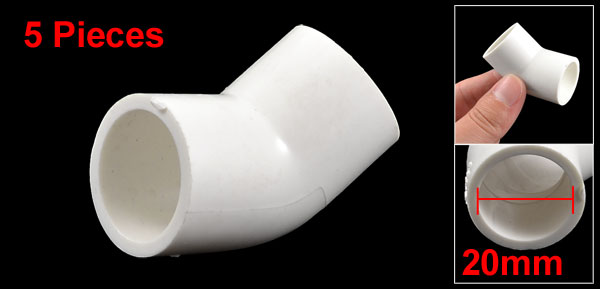 5 Pcs 20mm Inner Diameter 45 Degree Elbow PVC Pipe Connectors Fittings White