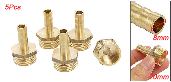 5 Pcs 20mm M Threaded 8mm OD Hose Tail PEX Pipe Adapter