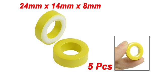5 Pcs 24mm x 14mm x 8mm Yellow White Iron Core Power Inductor Ferrite Ring