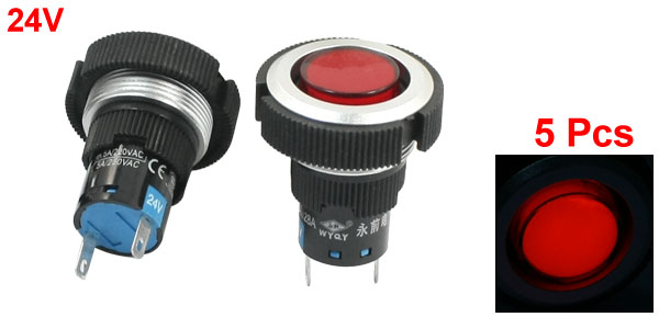 5 Pcs 24V 22mm Thread Plastic Red Signal Indicator Light Lamp