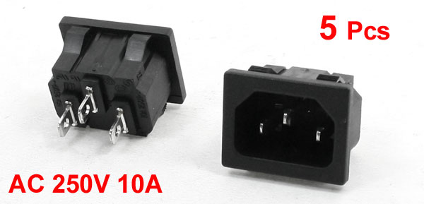 5 Pcs 250V 10A 3 Pin C14 Type AC Power Inlet Socket for Rice Cooker