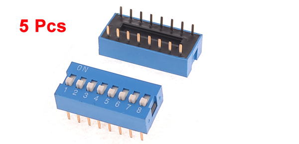 5 Pcs 2.54mm Pin Pitch 2 x 8 Pins 8 Position Slide Style DIP Switches Blue