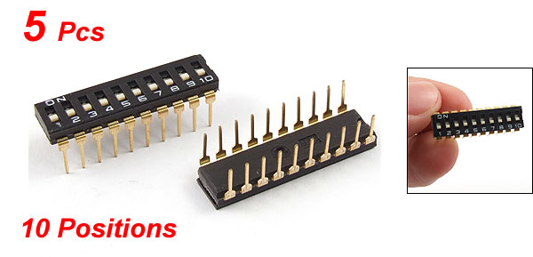 5 Pcs 2.54mm Pitch 10 Position IC Type DIP Switch Black