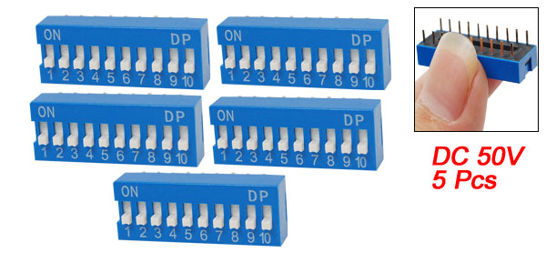 5 Pcs 2.54mm Pitch 10 Position Slide Type DIP Switch Blue Yltyt