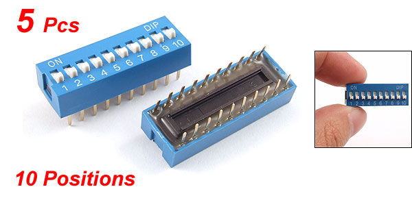5 Pcs 2.54mm Pitch 10 Position Slide Type DIP Switch B;lue