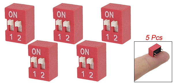 5 Pcs 2.54mm Pitch 2 Position Piano Type DIP Switch Red Urjew