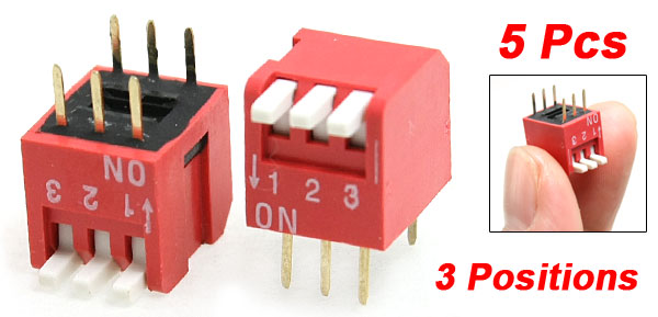 5 Pcs 2.54mm Pitch 3 Position Piano Type DIP Switch Red