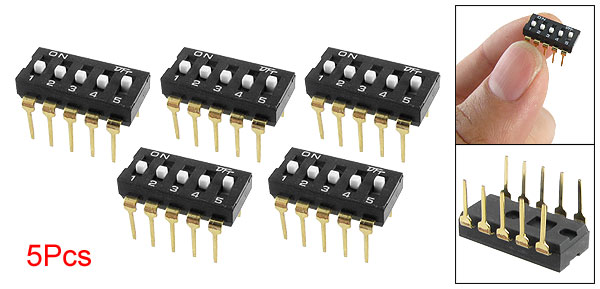 5 Pcs 2.54mm Pitch 5 Position IC Type DIP Switch Black Kgiqp