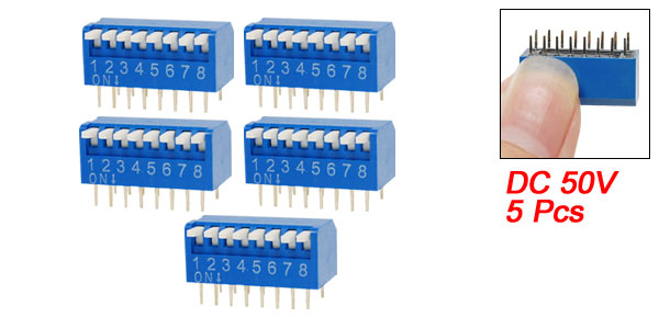 5 Pcs 2.54mm Pitch 8 Position Piano Type DIP Switch Blue Rdstn