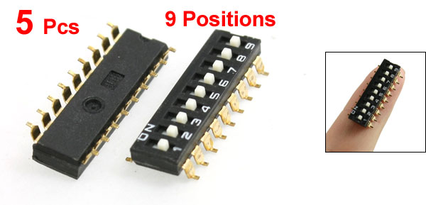 5 Pcs 2.54mm Pitch 9 Position SMD Type DIP Switch Black