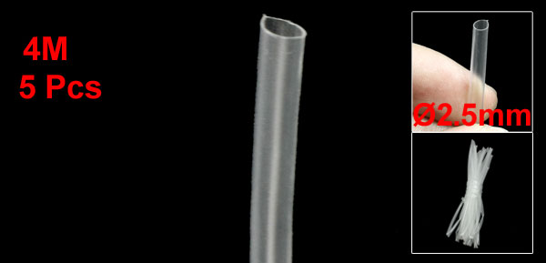 5 Pcs 2.5mm Diameter Clear Polyolefin Heat Shrinking Tube 4M 13.1Ft