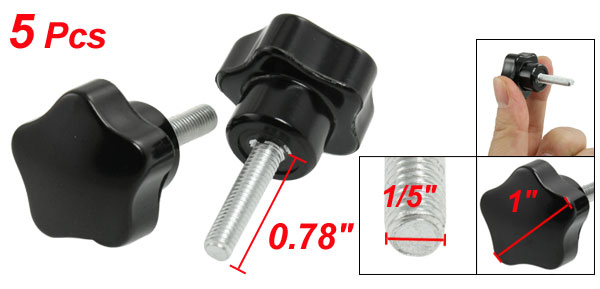 Product Name Star Knob Type Screw on Head Diameter 25mm / 1" Thread Length 20mm / 0.78" Thread Diameter 5mm / 1/5" Total Height 38mm / 1.5" Material Metal & Plastic Color Silver Tone & Black Weight 58g Package Content 5 x Star Knob - Reviews