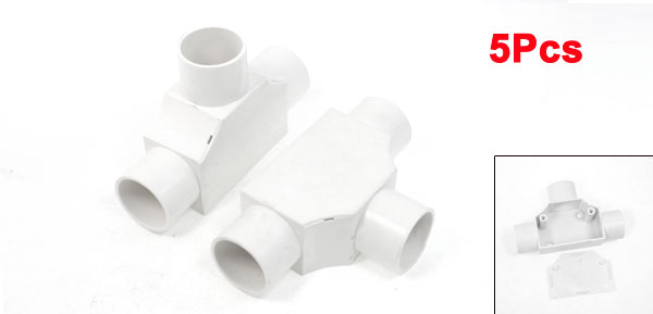 5 Pcs 25mm Hole 3 Ways White PVC Pipe Tee Shaped Connectors w Cover