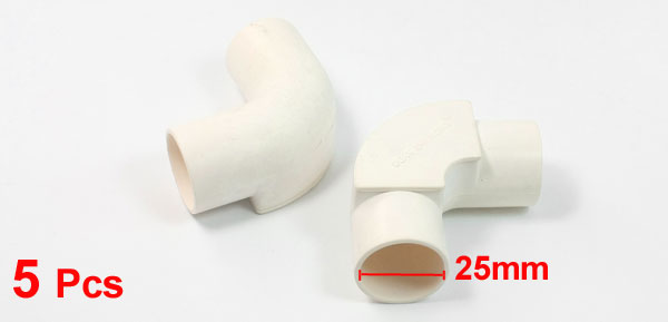 5 Pcs 25mm Inner Dia. 90 Degree Elbow White PVC Pipe Connectors w Cover