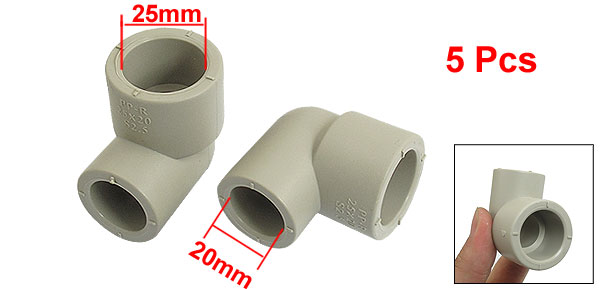 5 Pcs 25mm to 20mm Inner Dia 90 Degree Elbow PPR Pipe Connectors