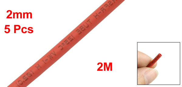 5 Pcs 2M 6.6ft 2mm Dia Red Heat Shrink Tubing Tube