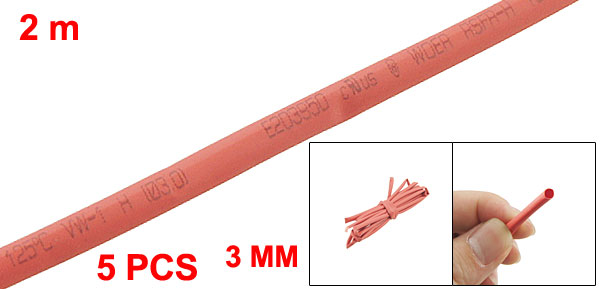 5 Pcs 2m 6.6ft 3mm Tube Sleeving Heat Shrink Tubing Red