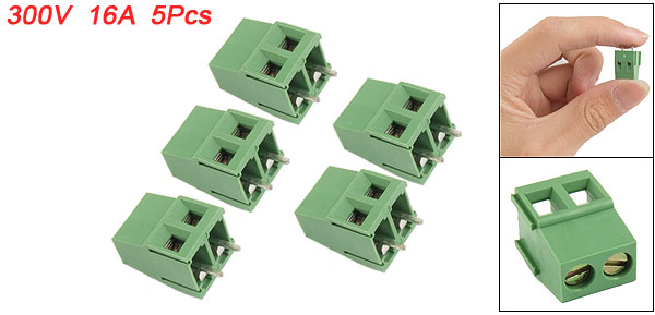 5 Pcs 2P 5mm Pitch PCB Screw Terminal Block Green 300V 16A