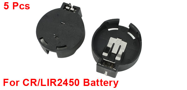 5 Pcs 2Pin CR/LIR2450 Coin Button Battery Holder Socket Black