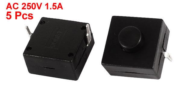 5 Pcs 2Pins Push Button Switch Black AC 250V 1.5A for Electric Torch