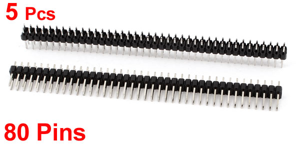 Product Name Pin Header Pins Number 80(2*40 Pin) Row Number 2 Type Straight Male Pin Header Pin Distance 2.54mm Total Size 102 x 11 x 5mm/4" x 0.43" x 0.2"L*W*H) Material Plastic, Metal Color Black, Silver Tone Weight 21g Package Content 5PCS x Straight Pin Header - Reviews